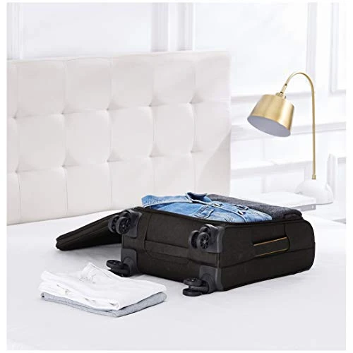 - Softside spinner made of durable 600D polyester with a stylish design for a fashionable, sophisticated appearance