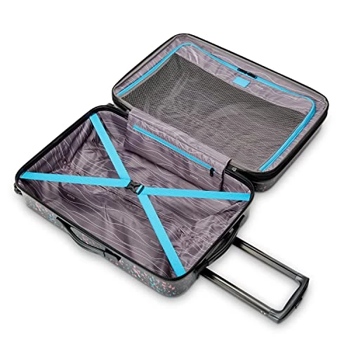 Details: Transport your travel essentials effortlessly and stylishly. This extremely lightweight and durable spinner features ABS scratch resistant texture with fashionable squared lines. It features single spinner wheels for a smooth ride. The fully-lined interior has cross-straps and book opening case with mesh divider.