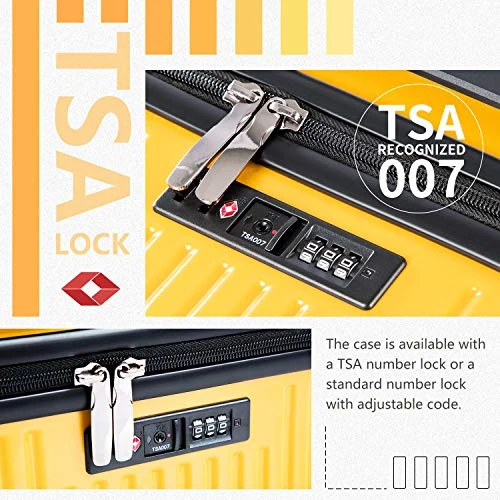 - ABS+PC material, durable and lighter hard shell, features textured finish to prevent against scratches. The beveled edge design on the upper part increases toughness for the luggage.