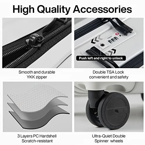 - High quality accessories:YKK zipper is smooth and durable,double TSA locks are more convenient and safer,8 quiet spinner wheels are easy to maneuver and roll with ease,adjustable 4-step telescoping handle system.