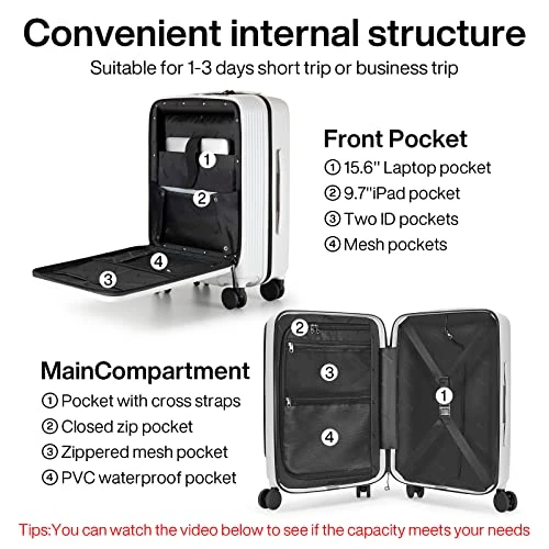 - Innovative design:Focus on luggage design for 22 years,to provide you with excellent products.Front pocket design,quickly access to electronic products,easy to deal with office and security check,separate storage from clothes,to keep belongings organized.