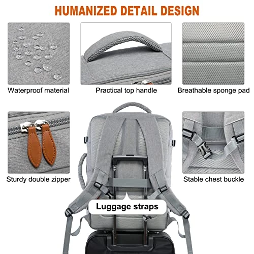 - [FOR TRAVEL] This carry on backpack is flight approved, you can travel anywhere you want, it has a side handle, it can be turned into a suitcase backpack, and there is a luggage strap on the back, which can be placed on the luggage, it’s very convenient to carry. Breathable sponge mesh design on the backside and shoulder straps help for the air convection, ventilation, and heat elimination and help relieve the stress from your shoulder. It’s a nice personal item backpack