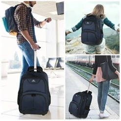 Backpack With Wheels, Travel-friendly Rolling Laptop Backpack For Men Women, MATEIN Freewheel Carry On Luggage Business Bag, Compact College School Student Computer Bag Fit 15.6 Inch Notebook,Blue