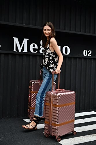 ABS and PC material:lightweight and not easy broken.The retractable trolley has multiple different height settings that lock in place,for people with different heights and needs.The metallic corner and sturdy thick aluminum frame can perfectly protect the luggage from collision damage.TSA lock allow the US Transport Secuurity Association to inspect your luggage without damaging the locking mechanism.High quality omni-directional wheel is of heat dissipation capacity,never mind the long distance.Handle:Top and side handles which automatically return the original position when released enhance your comfort to carry the luggage and bear a heavy weight.