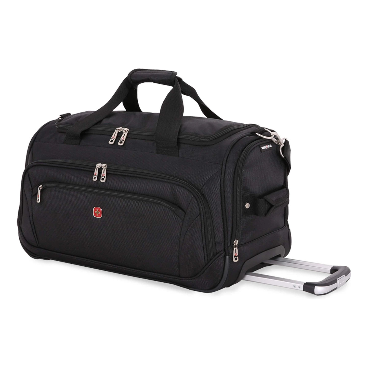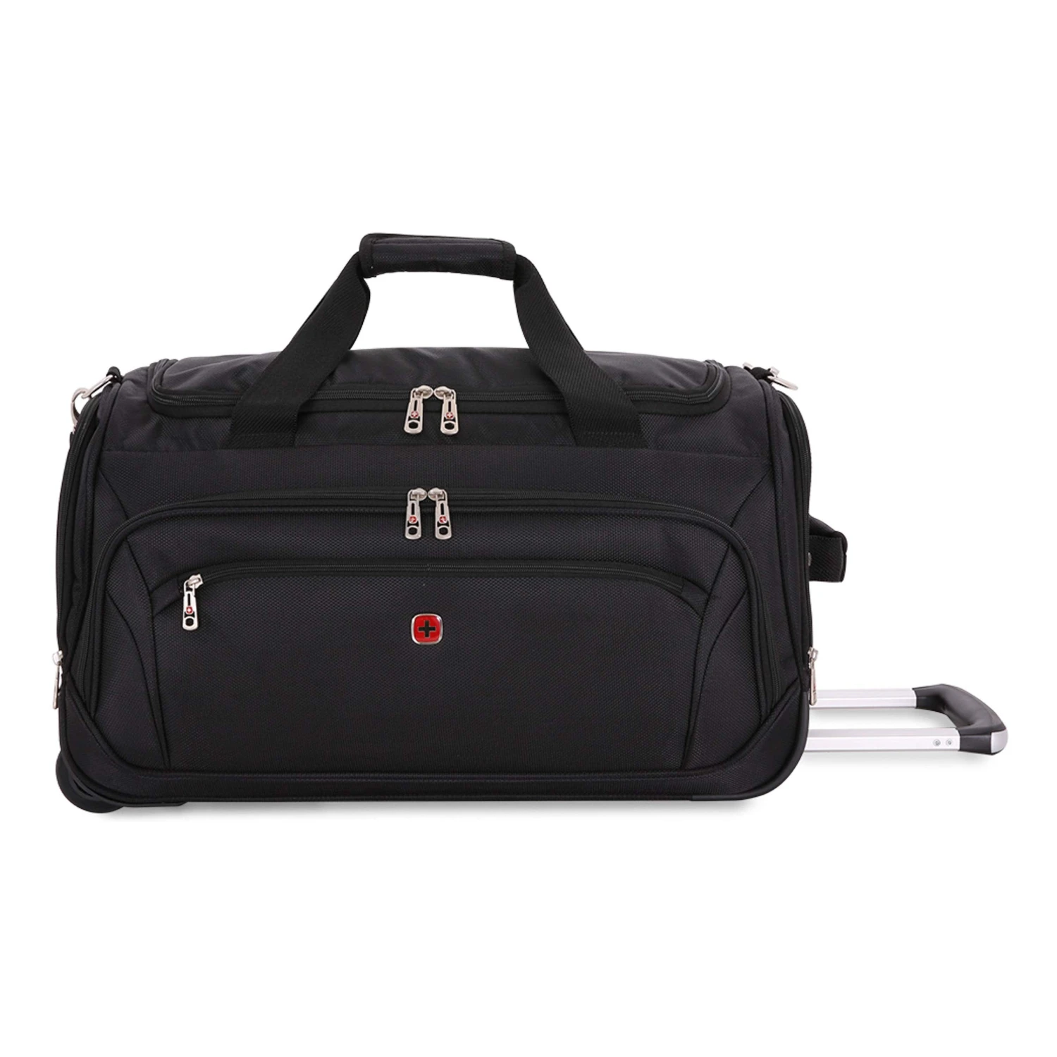- CONVENIENCE: This modern duffel includes two rolling wheels, padded grab handles, and a padded shoulder strap for versatility. Plus, separate wet items from your dry clothes with the help of an inner removable wet bag.