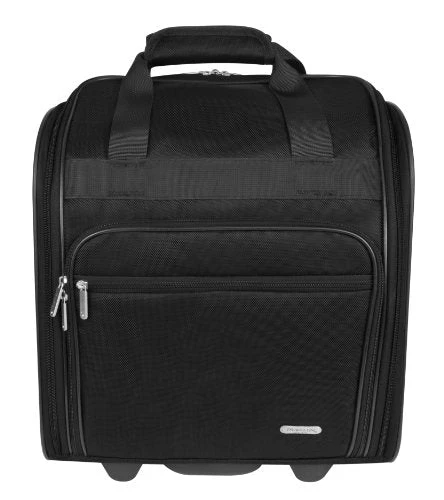Details: Beat the high cost of checked baggage with this 15 inch wheeled carry-on from Travelon. Small enough to fit beneath most airline seats or in the overhead compartment. This small bag has lots to offer, with a roomy main compartment with 2 zip pockets and 2 open-top pockets. Xippered front organizer compartment has a padded iPad or tablet pocket. It also have a fold flat water bottle compartment and comes with an Add-A-Bag strap for easier mobility.