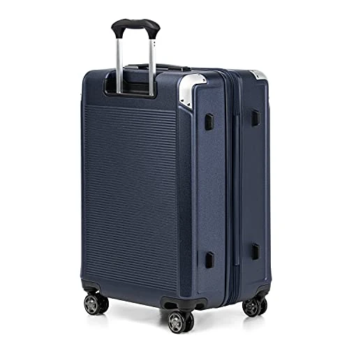 Details: Check-in securely with the ultimate medium-sized hard suitcase spinner–stylish, ultra-durable and loaded with conveniences. The Platinum® Elite Medium Check-in Expandable Hard side luggage spinner is ideal for medium and longer trips and adapts when you need more packing space with a zippered 2” expansion option. Designed for great looks and ultimate resilience, this checked luggage is constructed with an ultra-strong 100% polycarbonate shell that flexes upon impact to prevent cracking and keep contents protected, while its attractive textured finish helps reduce the visibility of scuffs or scratching. Genuine leather trim adds a sophisticated touch, and distinctive aluminum corner armor protects high-impact areas in style. This hardshell luggage has a built-in lock that allows TSA authorities to unlock and lock safely and securely when needed. Interior zippered divider panels and adjustable hold-down straps keep contents organized, separated and secured. Multiple accessory pockets provide built-in organization, and a water-resistant pocket provides a convenient place to stow away damp items or toiletries. Wherever you go, this hardside suitcase flies with precise control and effortless roll, thanks to the Travelpro® exclusive PrecisionGlide™ System–eight MagnaTrac® self-aligning spinner wheels led by a sturdy, four-stop adjustable PowerScope Lite handle with comfortable Contour Grip. This hard case luggage is backed by our Built For a Lifetime Limited Warranty with the Trusted Companion Promise that even covers damage caused by airlines or other common carriers for the first five years of the lifetime warranty.